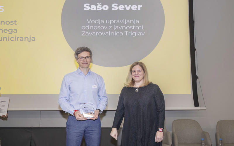 Prejemnik priznanja osebnost internega komuniciranja 2025 je Sašo Sever, vodja oddelka za odnose z javnostmi v Zavarovalnici Triglav. Osemčlanska izborna komisija je prepoznala še tri komunikatorje, ki so prejeli posebna priznanja na področju komuniciranja.